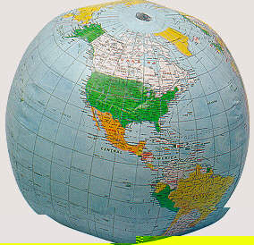 Vinyl inflatable globe can be used with exercises that involve illustrating the Earth. Blow it up when you do the exercise and deflate to store. Political with currents on a clear globe with 16" diameter.