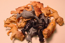 Includes one container of plastic animals for lab designed to investigate different organisms and classify objects; total of 50 pieces of 10 different animals (5 of each) used for creating prints. (code LC-OKA)