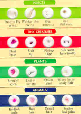 Set of 12 slides with 4 different items on each slide. Great for beginning microscopy.