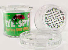 3 inch diameter, with grid on the bottom, magnifying top, and holes to keep the little critters you capture alive.