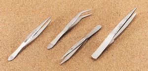 4.25" chrome forceps with a pin. Many uses in science from selecting bones from fur in owl pellets to picking up beads