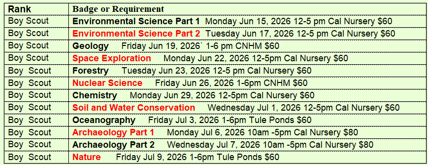 We have programs that cover Cub Scout requirements and
